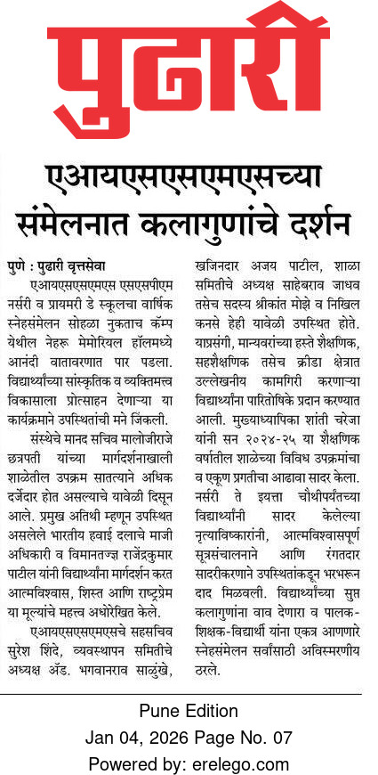 SSPM Nursery and SSPM Primary School News in Pudhari 4th Jan 2026
