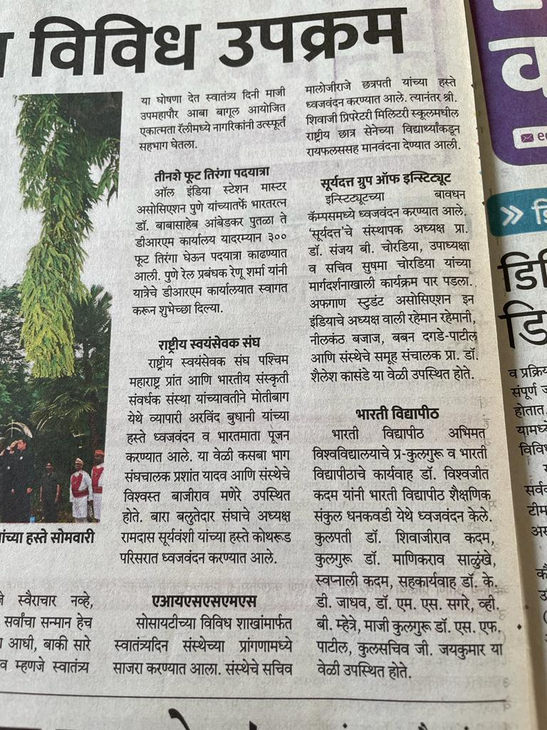 AISSMS Independence News in Sakal 17th Aug 22