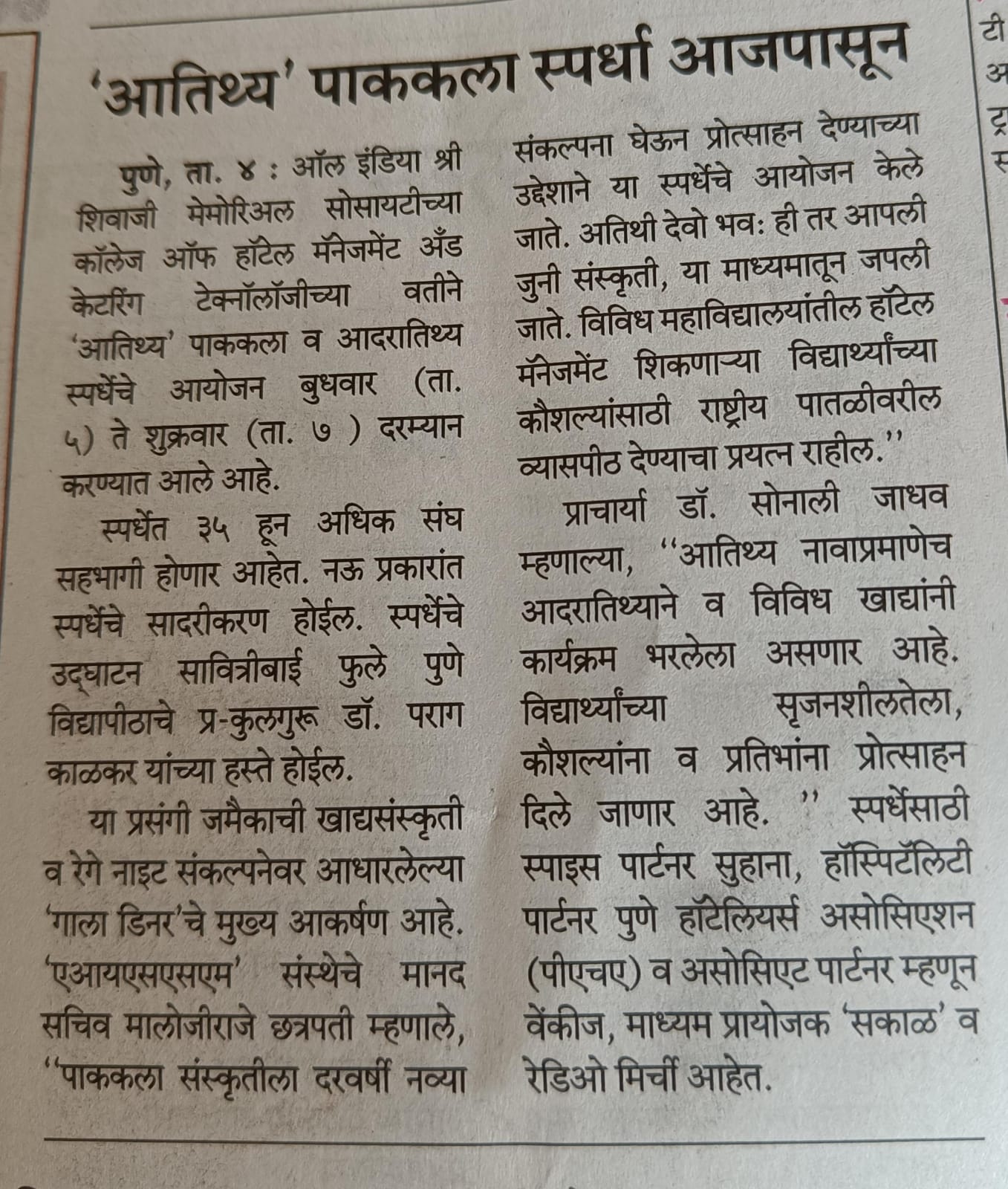 CHMCT Atithya Pre Event news in Sakal 6th Feb 2025