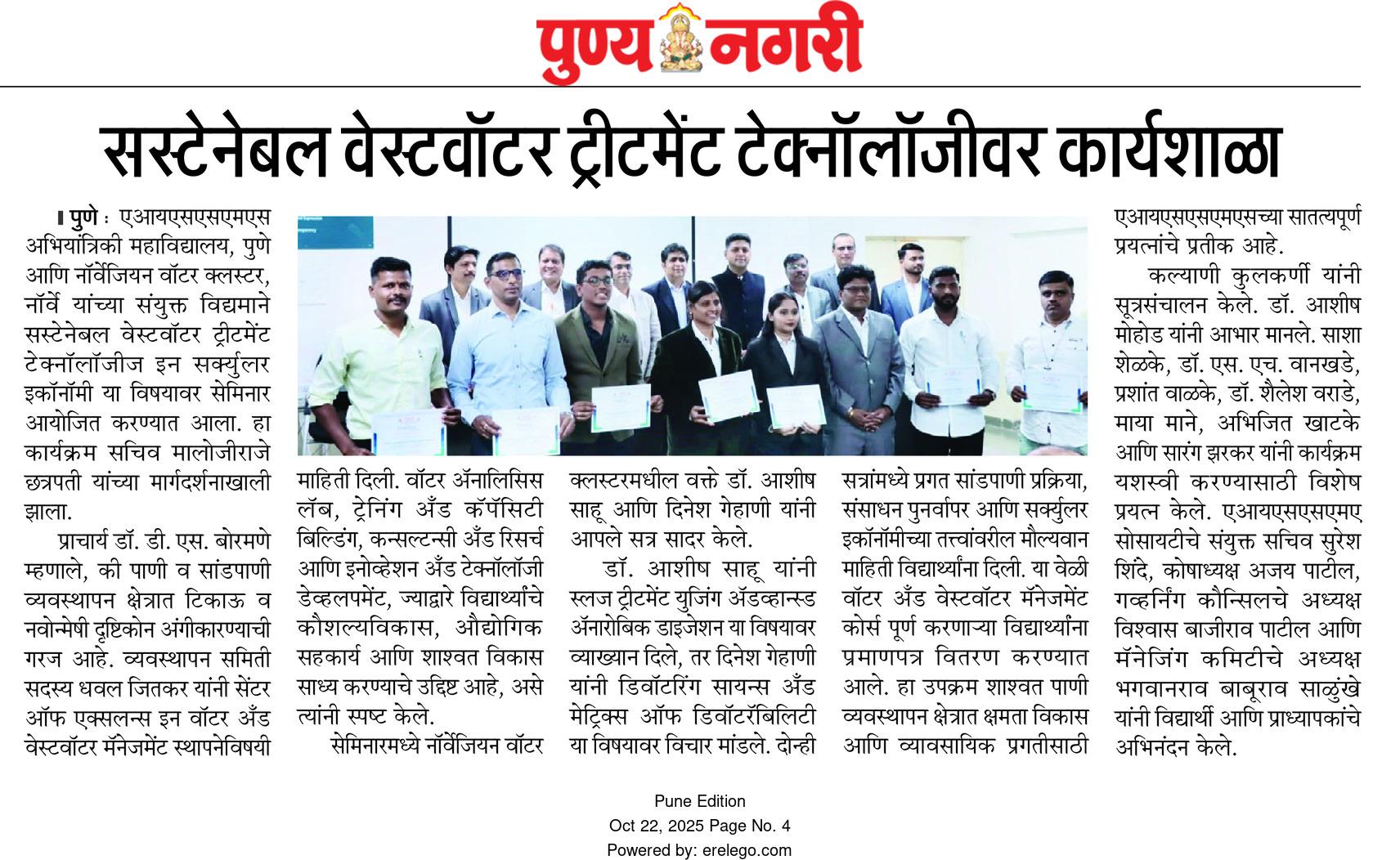COE News in Punya Nagari 22nd Oct 2025